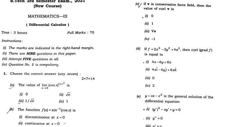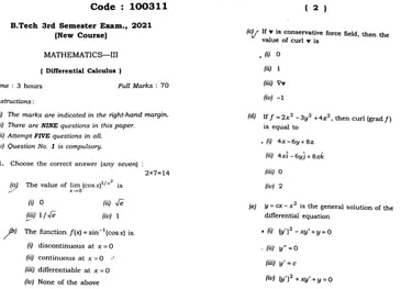 Mathemathics III 2021 - 1 paper