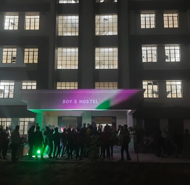 Winter had painted the night sky with a deep chill, but inside the boys’ hostel, it was a completely different story. The buzz started early, with groups of friends gathering in excited anticipation. Jackets, hoodies, and scarves were the outfit of the night, but no one cared about the cold. The focus was on one thing: DJ night was finally here.